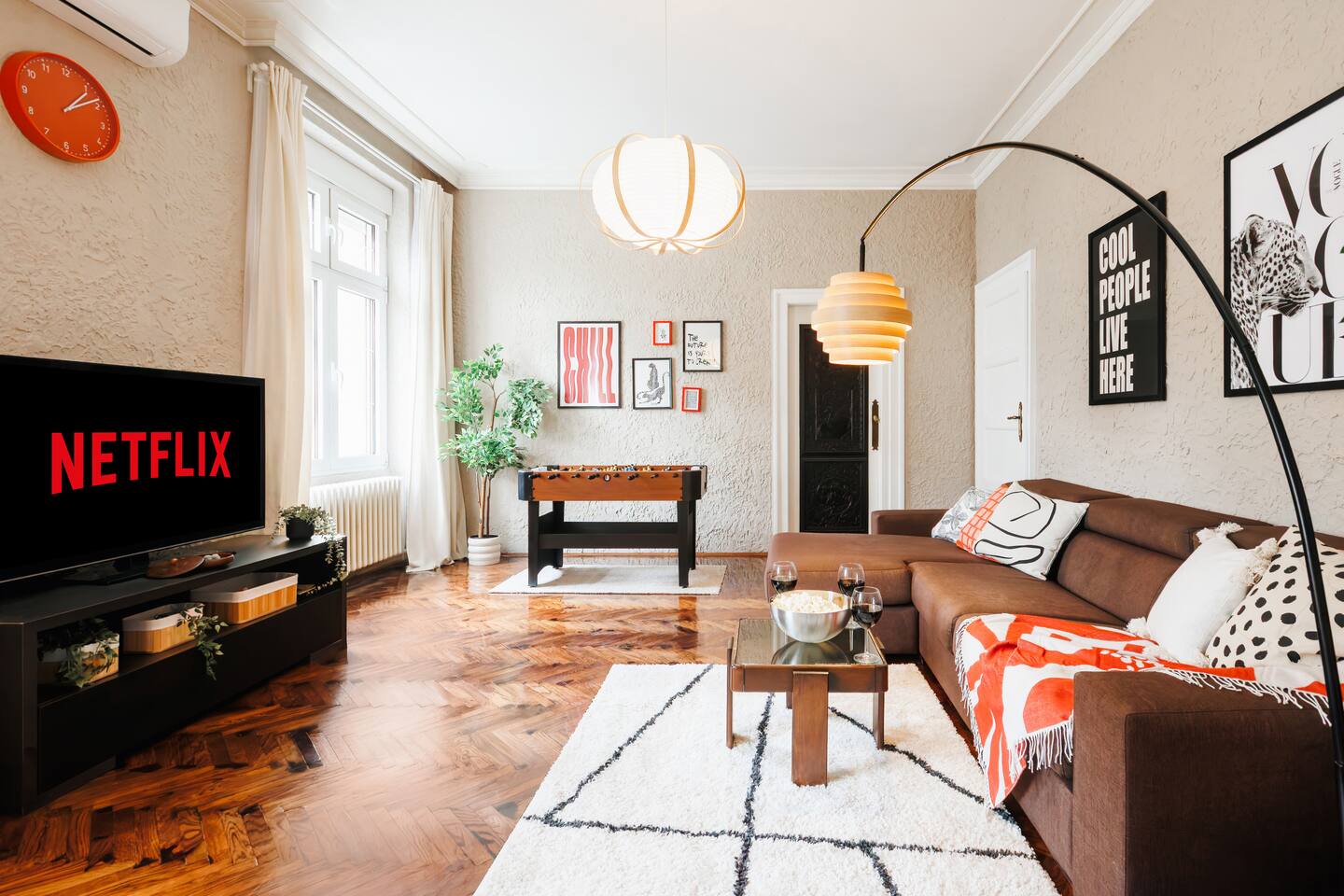 Inside you'll find: ✓ The spacious living room with Smart TV and Netflix ✓ 3 comfortable Bedrooms: 2 King beds + 1 Queen bed ✓ Fun game zone featuring a foosball table ✓ Cozy balcony ✓ Kitchen with stove, oven, fridge, cookware, and basic groceries ✓ Capsule coffee machine – perfect espresso in seconds ✓ Wi-Fi & Workspace ✓ Air-conditioning ✓ Washing machine with detergent ✓ Handy extras like an iron, umbrellas, adapters, first aid kit, sewing kit & lint roller Book now — and we’ll send our gastro guide: 5 dishes to start your Serbian food journey with the recommended location🌮🍟