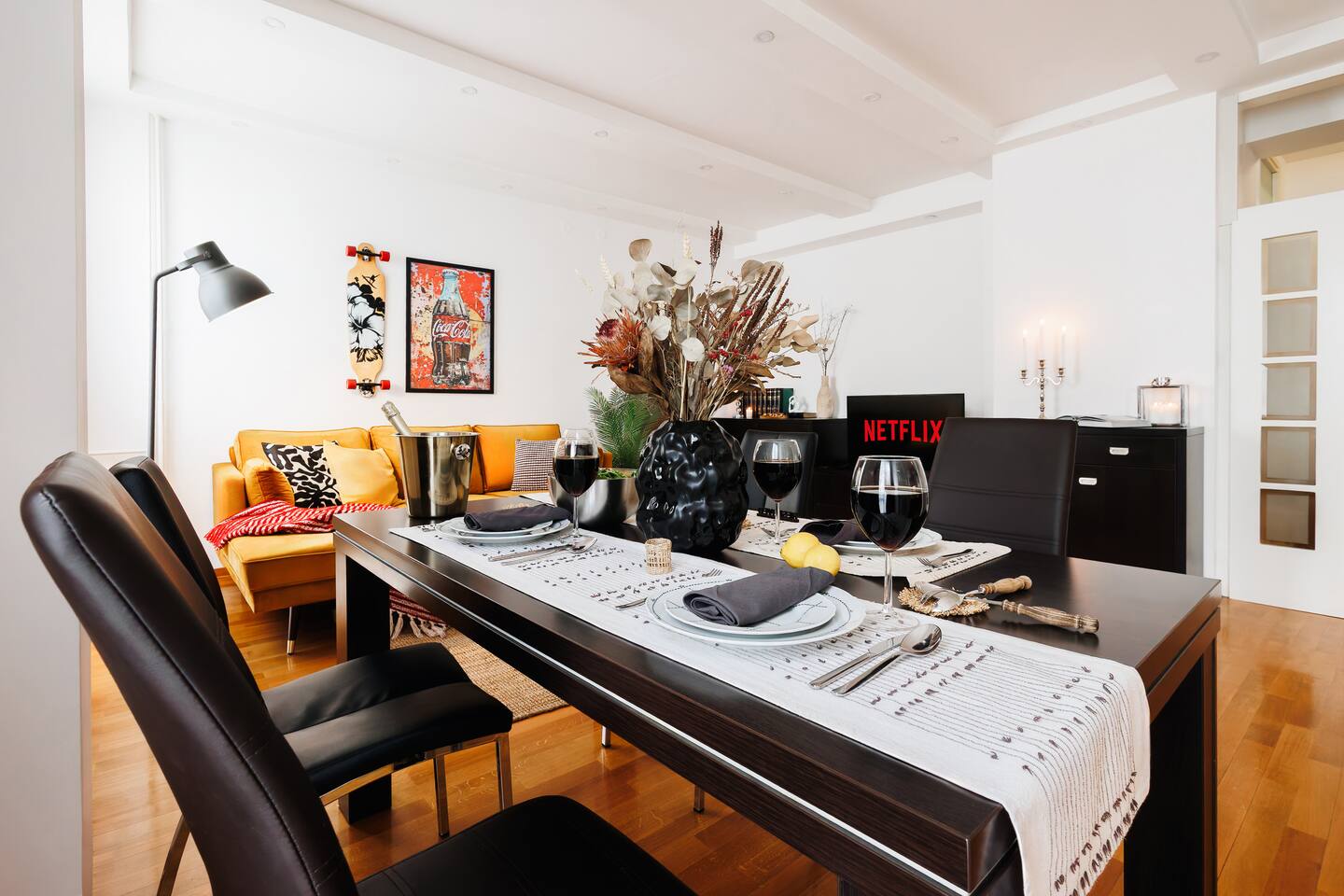 Inside you'll find: ✓ The spacious living room with Smart TV and Netflix ✓ 3 comfortable Bedrooms ✓ Cozy dining space for shared meals and long conversations ✓ Fast Wi-Fi [190+ Mbps] & Workspace ✓ Fully equipped kitchen with oven, fridge, dishwasher, microwave, cookware, and basic groceries ✓ Capsule coffee machine – perfect espresso in seconds ✓ Air-conditioning ✓ 1.5 Bathrooms + washing machine ✓ Handy extras like an iron, umbrellas, adapters, first aid kit, sewing kit & lint roller What our guests say: «The apartment is just perfect, in a very pleasant neighborhood and with a perfect host» «A top Airbnb of my last 10+ years. An amazing introduction to Belgrade. Don’t second think it - book this gem!»