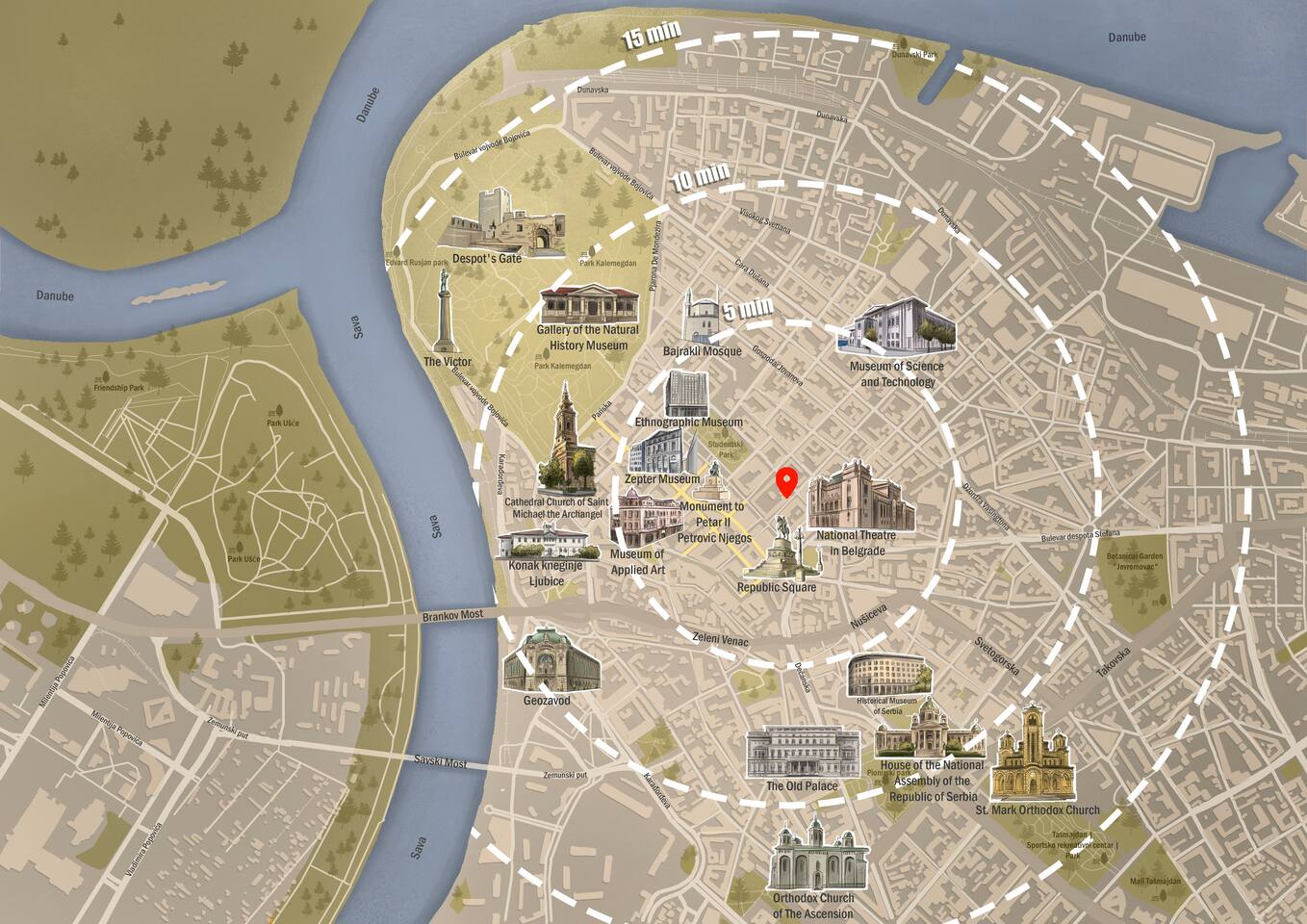 Our apartment enjoys an ideal location, placing you close to numerous attractions, allowing you to effortlessly delve into the city's rich history and lively ambiance. In just a leisurely 1-minute stroll, you'll arrive at Knez Mihailova, the vibrant pedestrian street renowned for its charming shops, bustling cafes, and lively atmosphere. It's the perfect spot to soak up the city's vitality and indulge in some retail therapy. A mere 10-minute walk away lies Kalemegdan, a vast fortress complex proudly standing at the confluence of the Danube and Sava rivers. Explore its ancient walls, take in awe-inspiring panoramic views, and wander through its serene park, filled with hidden corners and historical significance. You can reach Republic Square in just 5 minutes. This iconic square serves as the city's vibrant heart, surrounded by architectural marvels, cultural landmarks, and a bustling atmosphere. Immerse yourself in the lively energy and uncover the nearby National Museum Belgrade, a treasure trove of art and history. With such a convenient location, you'll have the freedom to explore these incredible attractions at your own pace, ensuring that your stay in Belgrade is brimming with unforgettable experiences and cherished memories.
