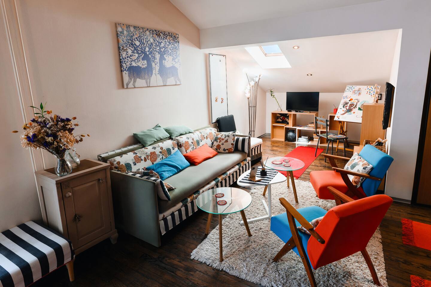 Inside you'll find: ✓ The spacious living room with dining area ✓ 4 comfortable Bedrooms ✓ Cozy terrace with a charming view ✓ Hammock chair ✓ Art studio ✓ Fast Wi-Fi [100+ Mbps] & Workspace ✓ Fully equipped kitchen with oven, microwave, dishwasher, toaster, cookware & basic groceries ✓ Capsule coffee machine – perfect espresso in seconds ✓ Air-conditioning ✓ 1.5 Bathrooms + washing machine ✓ Handy extras like an iron, umbrellas, adapters, first aid kit, sewing kit & lint roller ✓ Facing a quiet side street, yet located in the vibrant city center What our guests say: «Everywhere I felt the sense of care and attention put to decorate, to create space. It’s magical» «In the center of the city, close to cafes/restaurants, in a great location for sightseeing in Belgrade»