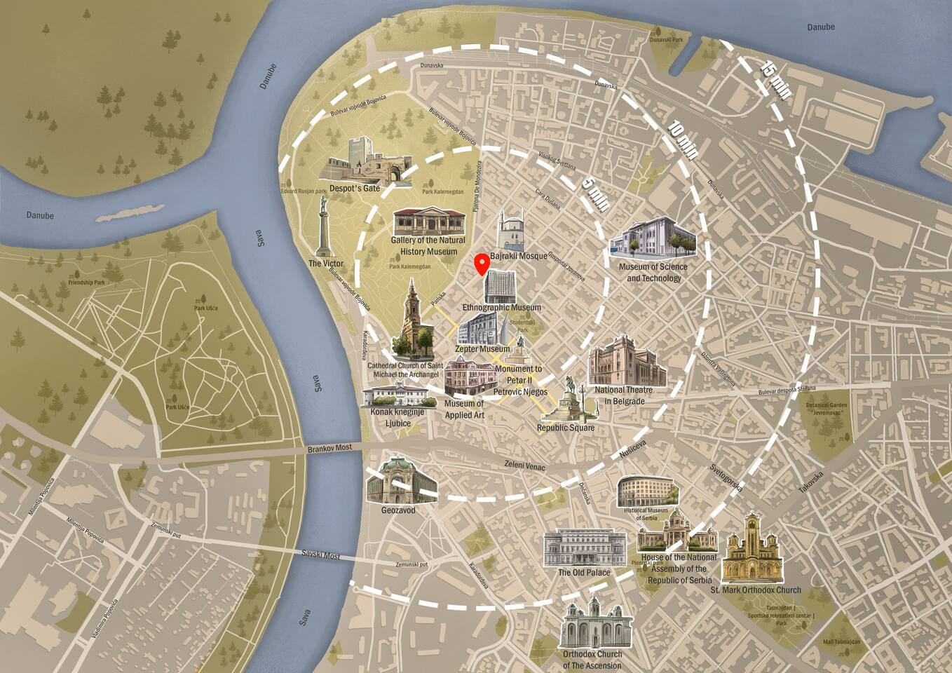 Our apartment enjoys an ideal location, placing you close to numerous attractions, allowing you to effortlessly delve into the city's rich history and lively ambiance. In just a leisurely 1-minute stroll, you'll arrive at Knez Mihailova, the vibrant pedestrian street renowned for its charming shops, bustling cafes, and lively atmosphere. It's the perfect spot to soak up the city's vitality and indulge in some retail therapy. A mere 1-minute walk away lies Kalemegdan, a vast fortress complex proudly standing at the confluence of the Danube and Sava rivers. Explore its ancient walls, take in awe-inspiring panoramic views, and wander through its serene park, filled with hidden corners and historical significance. If you venture a bit further, you can reach Republic Square in just 10 minutes. This iconic square serves as the city's vibrant heart, surrounded by architectural marvels, cultural landmarks, and a bustling atmosphere. Immerse yourself in the lively energy and uncover the nearby National Museum Belgrade, a treasure trove of art and history. With such a convenient location, you'll have the freedom to explore these incredible attractions at your own pace, ensuring that your stay in Belgrade is brimming with unforgettable experiences and cherished memories.