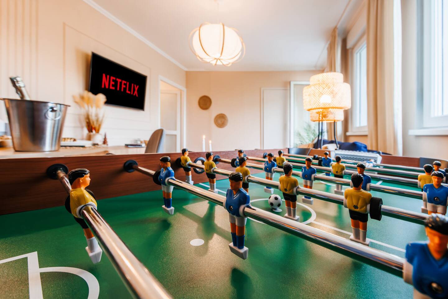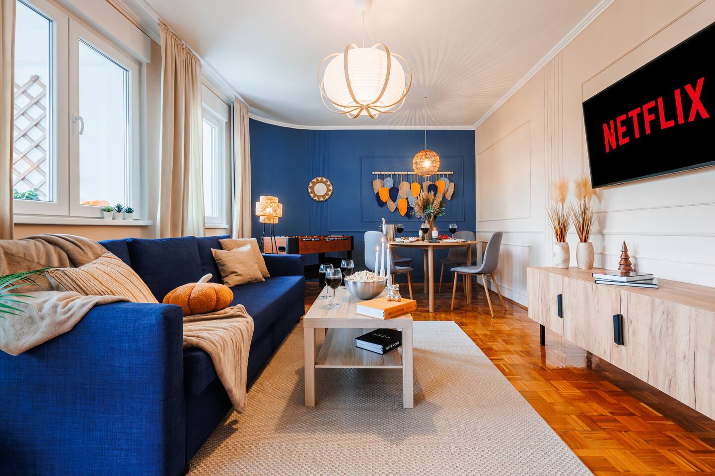 Inside you'll find: ✓ The spacious living room with Smart TV and Netflix ✓ 3 comfortable bedrooms: 3 Queen beds ✓ Cozy balcony ✓ Fun game zone featuring a foosball table ✓ Fast Wi-Fi [250+ Mbps] & Workspace ✓ Kitchen with stove, fridge, microwave, dishwasher, cookware, and basic groceries ✓ Capsule coffee machine – perfect espresso in seconds ✓ Air-conditioning ✓ Washing machine with detergent ✓ Handy extras like an iron, umbrellas, adapters, first aid kit, sewing kit & lint roller Book now — and we’ll send our gastro guide: 5 dishes to start your Serbian food journey with the recommended location🌮🍟