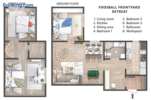 Inside you'll find: ✓ Charming living room with dining area, Smart TV and Netflix ✓ 3 comfortable bedrooms: 2 King beds + Queen bed ✓ Inviting dining space for shared meals and long conversations ✓ Fun game zone featuring a foosball table ✓ For music lovers: a guitar to set the vibe ✓ Fast Wi-Fi [280+ Mbps] & Workspace ✓ Fully equipped kitchen with oven, fridge, dishwasher, cookware, and basic groceries ✓ Capsule coffee machine – perfect espresso in seconds ✓ Air-conditioning ✓ Washing machine with detergent ✓ Handy extras like an iron, umbrellas, adapters, first aid kit, sewing kit & lint roller ✓ Facing a quiet side street ✓ Front yard ✓ Private entrance Book now — and we’ll send our gastro guide: 5 dishes to start your Serbian food journey with the recommended location🌮🍟