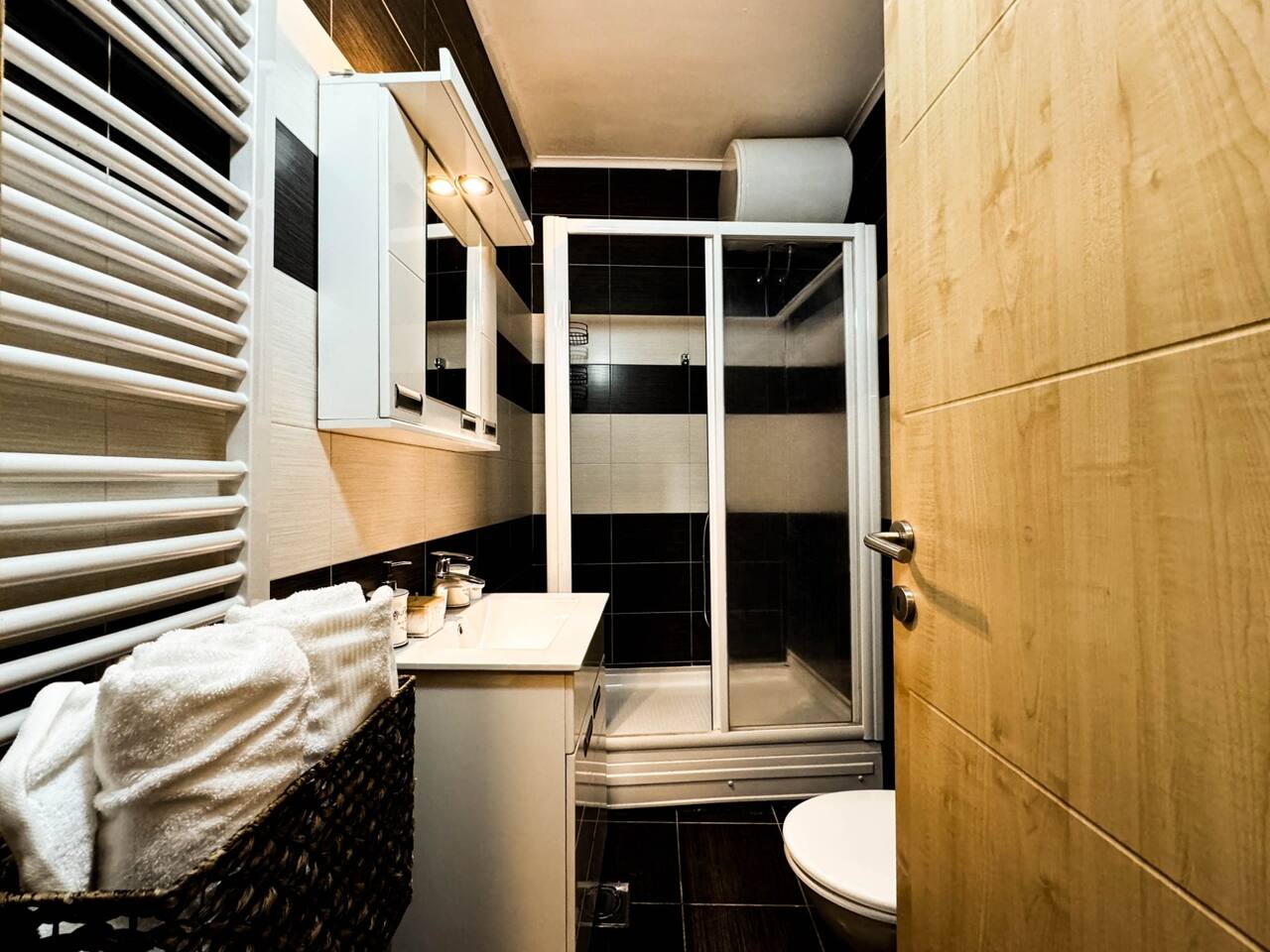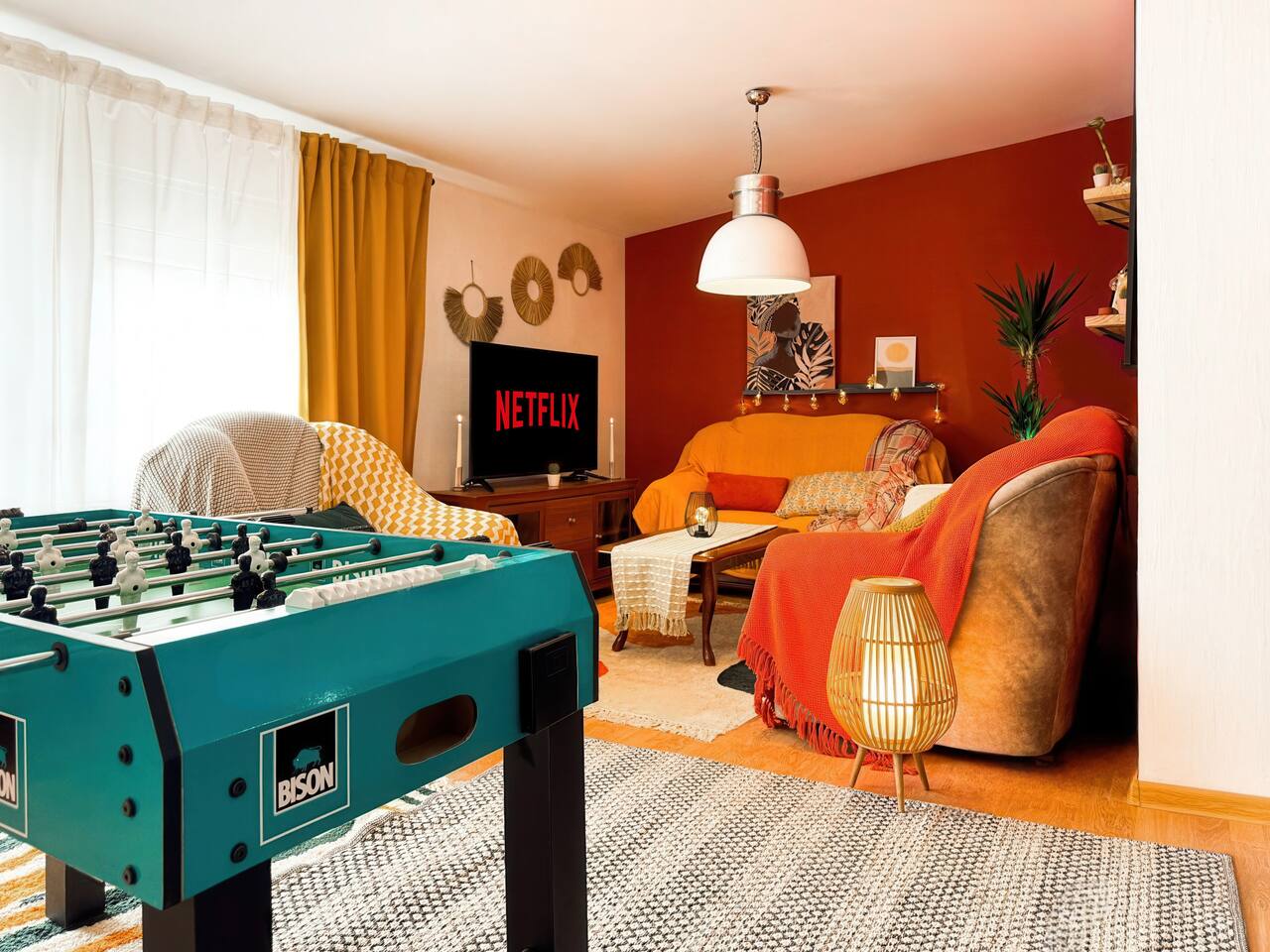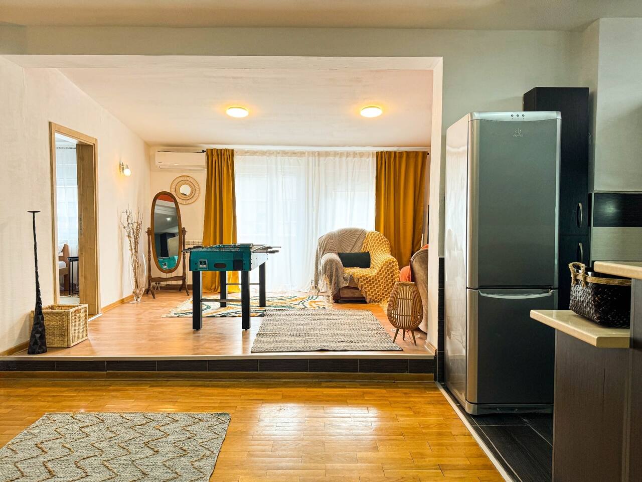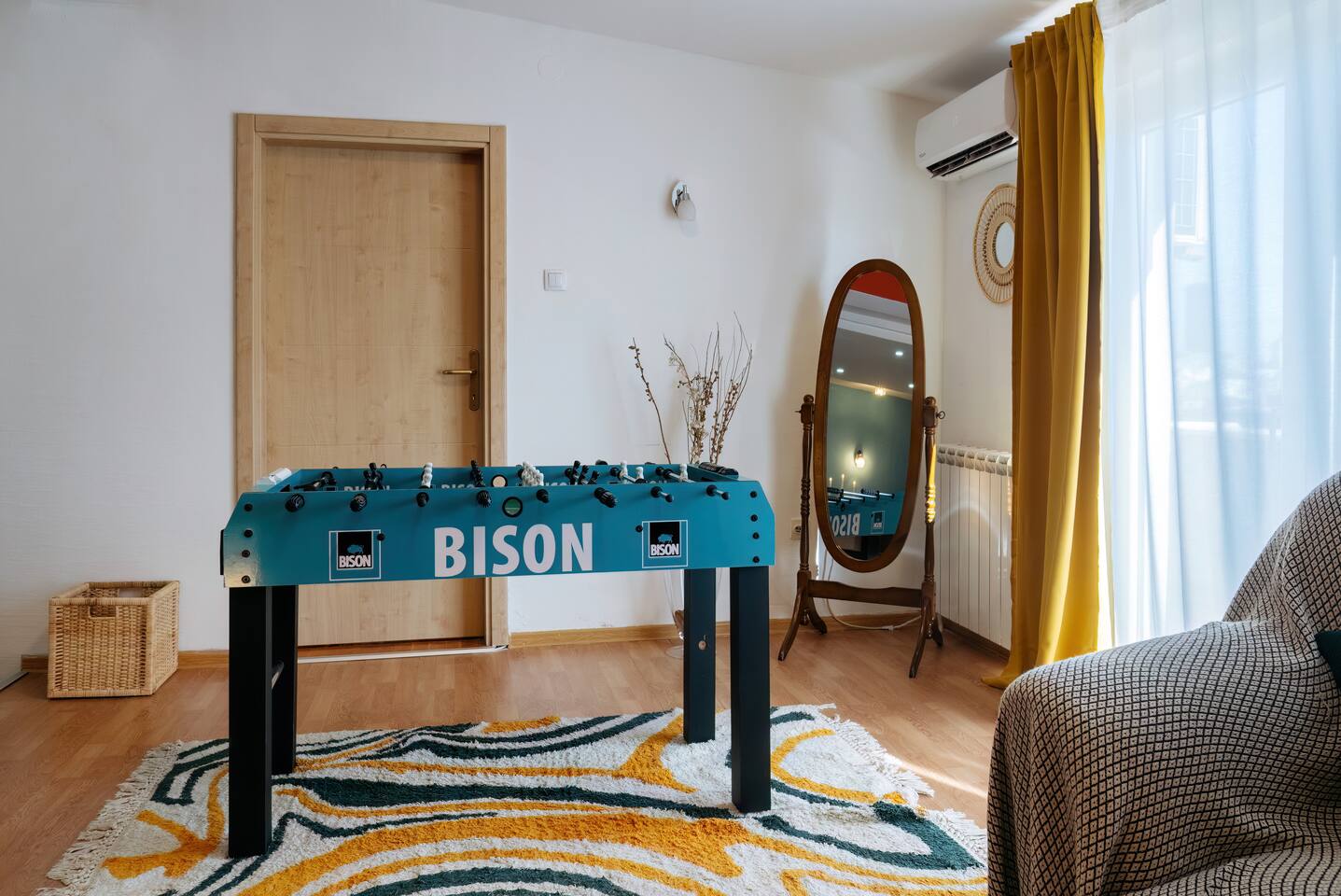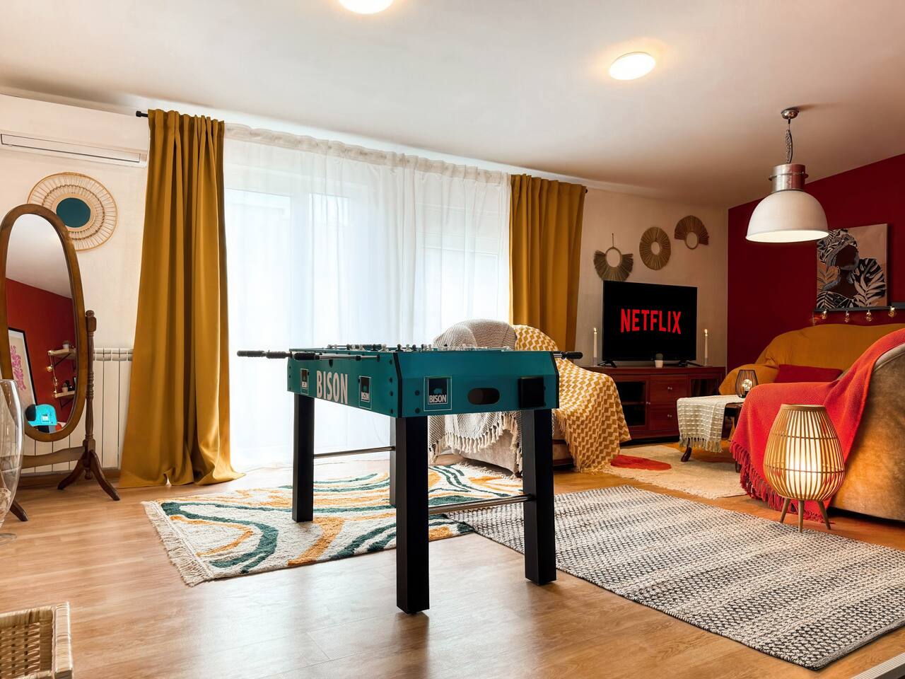 Inside you'll find: ✓ 3 comfortable bedrooms ✓ The spacious living room with SmartTV and Netflix ✓ Fun game zone featuring a foosball table ✓ Cozy balcony with city view ✓ Fully equipped kitchen with oven, fridge, cookware & basic groceries ✓ Capsule coffee machine – perfect espresso in seconds ✓ Air-conditioning ✓ Washing machine + detergent ✓ Handy extras like an iron, umbrellas, adapters, first aid kit, sewing kit & lint roller What our guests say: «Within walking distances to touristic locations; public transportation; restaurants, gyms, pharmacies; bakeries» «The apartment is clean, functional, cozy and full of very positive details»