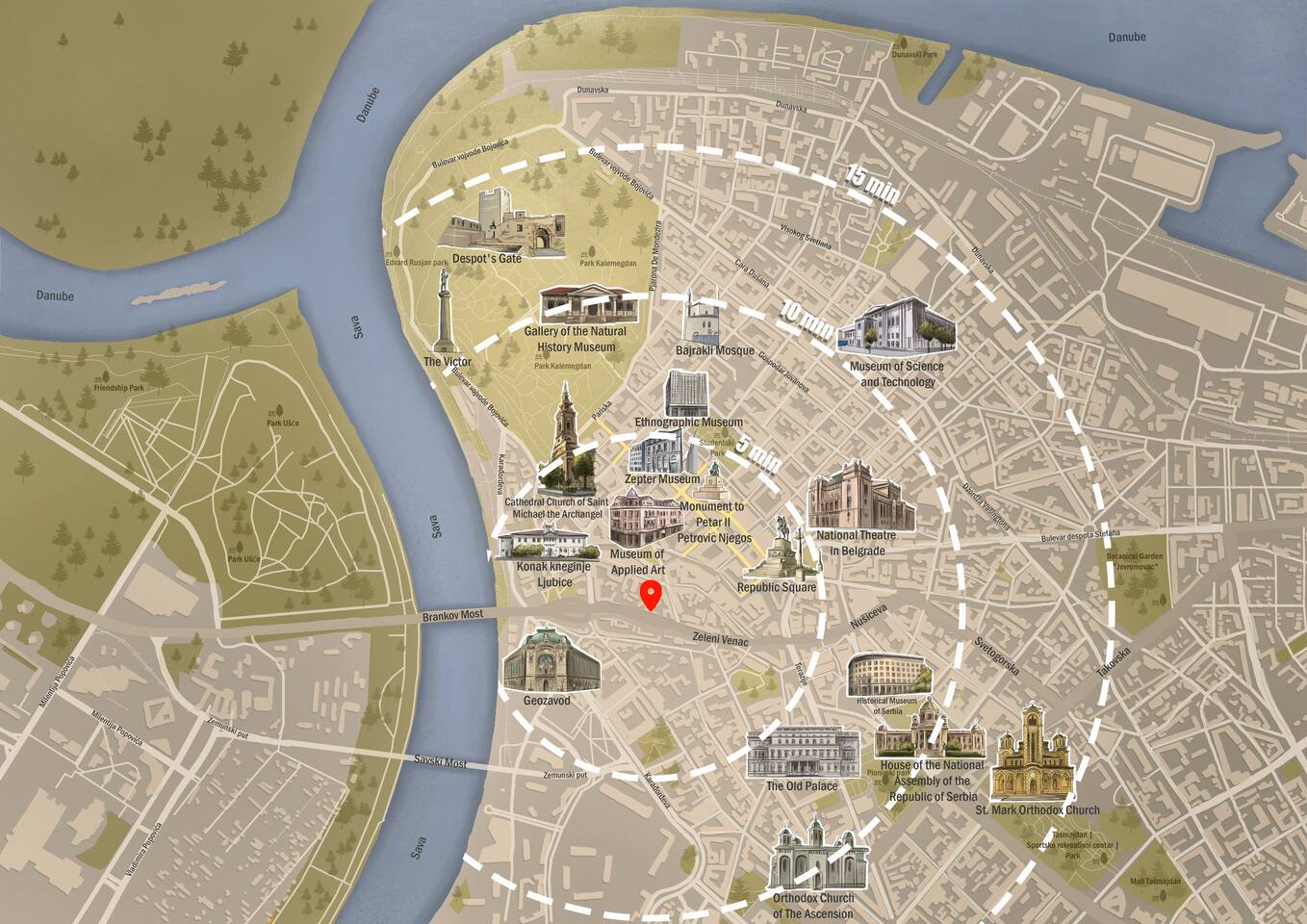 Our apartment enjoys an ideal location, placing you close to numerous attractions, allowing you to effortlessly delve into the city's rich history and lively ambiance. In just a leisurely 5-minute stroll, you'll arrive at Knez Mihailova, the vibrant pedestrian street renowned for its charming shops, bustling cafes, and lively atmosphere. You can reach Republic Square, an iconic square serves as the city's vibrant heart, surrounded by architectural marvels, in just 10 minutes. Visit National Museum Belgrade, a treasure trove of art and history, it is free on Sundays ;) A mere 15-minute walk away lies Kalemegdan, a vast fortress complex proudly standing at the confluence of the Danube and Sava rivers. Wander through its serene park, filled with hidden corners and historical significance. With such a convenient location, you'll have the freedom to explore these incredible attractions at your own pace, ensuring that your stay in Belgrade is brimming with unforgettable experiences and cherished memories.