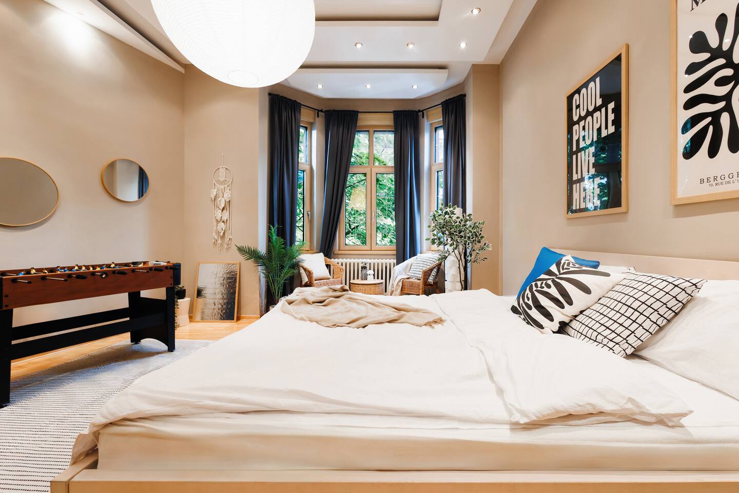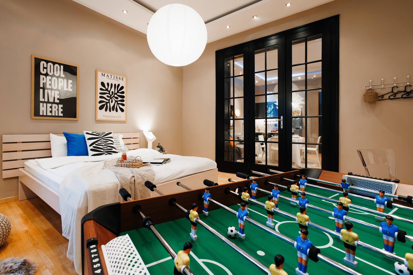 Inside you'll find: ✓ The spacious living room with Smart TV and Netflix ✓ 3 comfortable bedrooms: King bed + 2 Queen beds ✓ Cozy balcony ✓ Fun game zone featuring a foosball table ✓ Fast Wi-Fi [110+ Mbps] & Workspace ✓ Kitchenette with stove, fridge, cookware, and basic groceries ✓ Capsule coffee machine – perfect espresso in seconds ✓ Air-conditioning ✓ 1.5 Bathrooms + washing machine ✓ Handy extras like an iron, umbrellas, adapters, first aid kit, sewing kit & lint roller What our guests say: «If I could give this apartment more than 5 stars I would. It was the best Airbnb I have ever stayed in» «The apartment was incredibly clean and the location was perfect. Dima was a great host» Book now — and we’ll send our gastro guide: 5 dishes to start your Serbian food journey with the recommended location🌮🍟