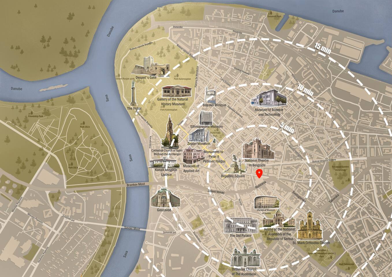 Our apartment enjoys an ideal location, placing you close to numerous attractions, allowing you to effortlessly delve into the city's rich history and lively ambiance. In just a leisurely 8-minute stroll, you'll arrive at Knez Mihailova, the vibrant pedestrian street renowned for its charming shops, bustling cafes, and lively atmosphere. You can reach Republic Square, an iconic square serves as the city's vibrant heart, surrounded by architectural marvels, in just 5 minutes. Visit National Museum Belgrade, a treasure trove of art and history, it is free on Sundays ;) With such a convenient location, you'll have the freedom to explore these incredible attractions at your own pace, ensuring that your stay in Belgrade is brimming with unforgettable experiences and cherished memories.