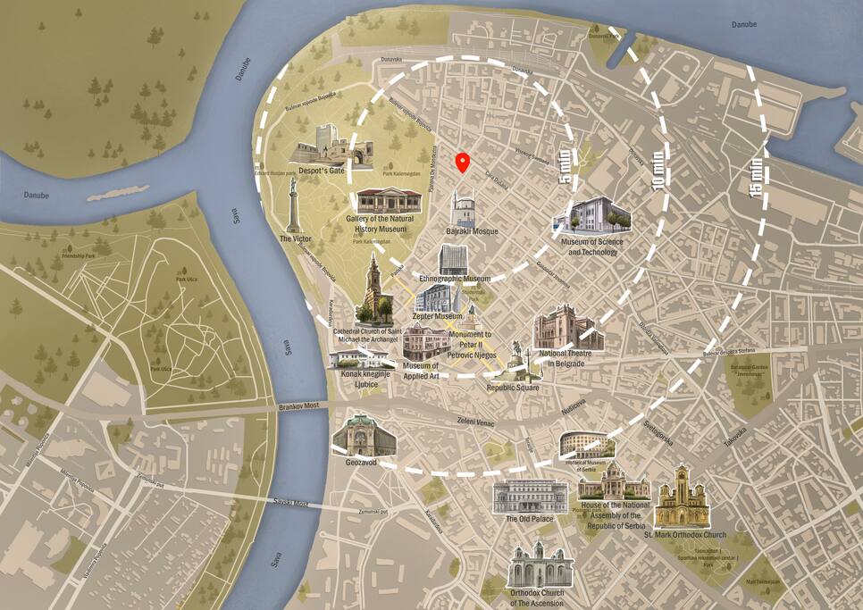 Our apartment enjoys an ideal location, placing you close to numerous attractions, allowing you to effortlessly delve into the city's rich history and lively ambiance. In just a leisurely 10-minute stroll, you'll arrive at Knez Mihailova, the vibrant pedestrian street renowned for its charming shops, bustling cafes, and lively atmosphere. It's the perfect spot to soak up the city's vitality and indulge in some retail therapy. A mere 10-minute walk away lies Kalemegdan, a vast fortress complex proudly standing at the confluence of the Danube and Sava rivers. Explore its ancient walls, take in awe-inspiring panoramic views, and wander through its serene park, filled with hidden corners and historical significance. If you venture a bit further, you can reach Republic Square in just 15 minutes. This iconic square serves as the city's vibrant heart, surrounded by architectural marvels, cultural landmarks, and a bustling atmosphere. Immerse yourself in the lively energy and uncover the nearby National Museum Belgrade, a treasure trove of art and history.