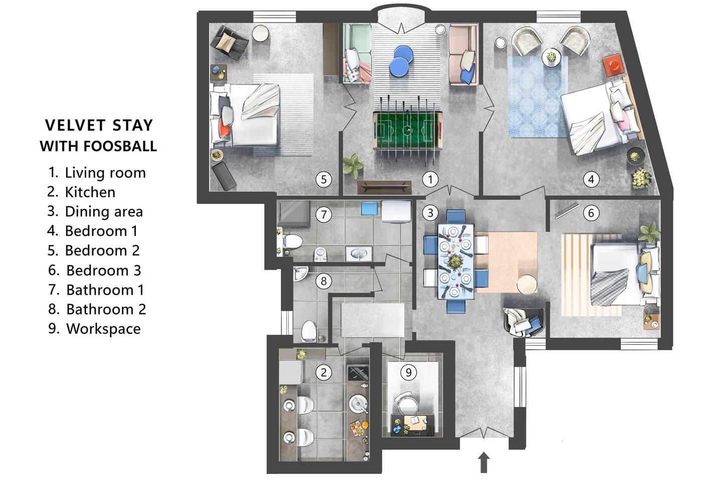 Inside you'll find: ✓ The spacious living room with Smart TV and Netflix ✓ 3 comfortable bedrooms: 1 King bed + 2 Queen beds ✓ Fun game zone featuring a foosball table ✓ Kitchen with stove, fridge, cookware, and basic groceries ✓ Capsule coffee machine – perfect espresso in seconds ✓ Wi-Fi [500+ Mbps] & Workspace ✓ Air-conditioning ✓ 1.5 Bathrooms + washing machine ✓ Handy extras like an iron, umbrellas, adapters, first aid kit, sewing kit & lint roller ✓ Facing a quiet side street, yet located in the vibrant city center Book now — and we’ll send our gastro guide: 5 dishes to start your Serbian food journey with the recommended location🌮🍟