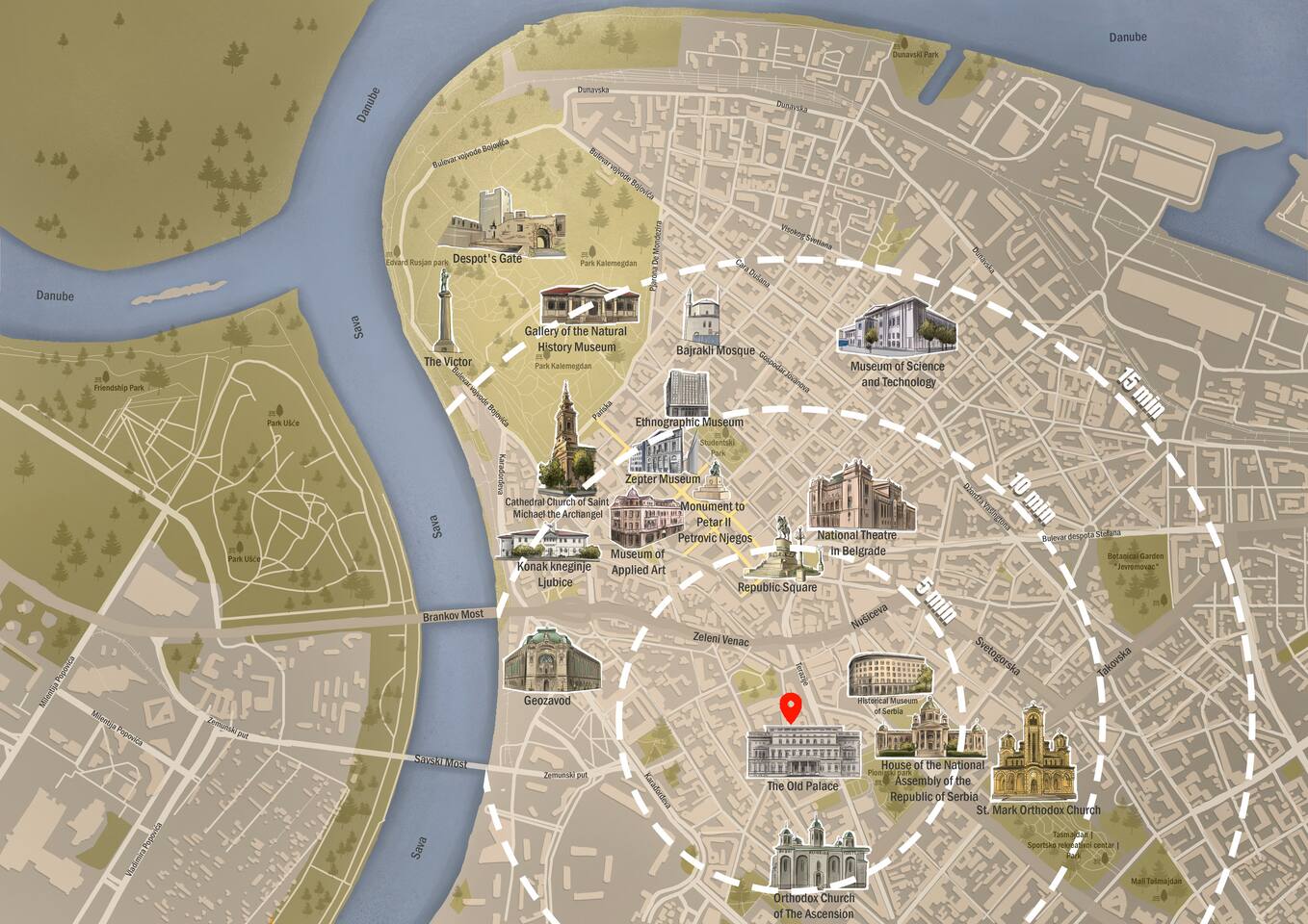 Our apartment enjoys an ideal location, placing you close to numerous attractions, allowing you to effortlessly delve into the city's rich history and lively ambiance. In just a leisurely 10-minute stroll, you'll arrive at Knez Mihailova, the vibrant pedestrian street renowned for its charming shops, bustling cafes, and lively atmosphere. You can reach Republic Square, an iconic square serves as the city's vibrant heart, surrounded by architectural marvels, in just 7 minutes. Visit National Museum Belgrade, a treasure trove of art and history, it is free on Sundays ;) A mere 20-minute walk away lies Kalemegdan, a vast fortress complex proudly standing at the confluence of the Danube and Sava rivers. Wander through its serene park, filled with hidden corners and historical significance. With such a convenient location, you'll have the freedom to explore these incredible attractions at your own pace, ensuring that your stay in Belgrade is brimming with unforgettable experiences and cherished memories.