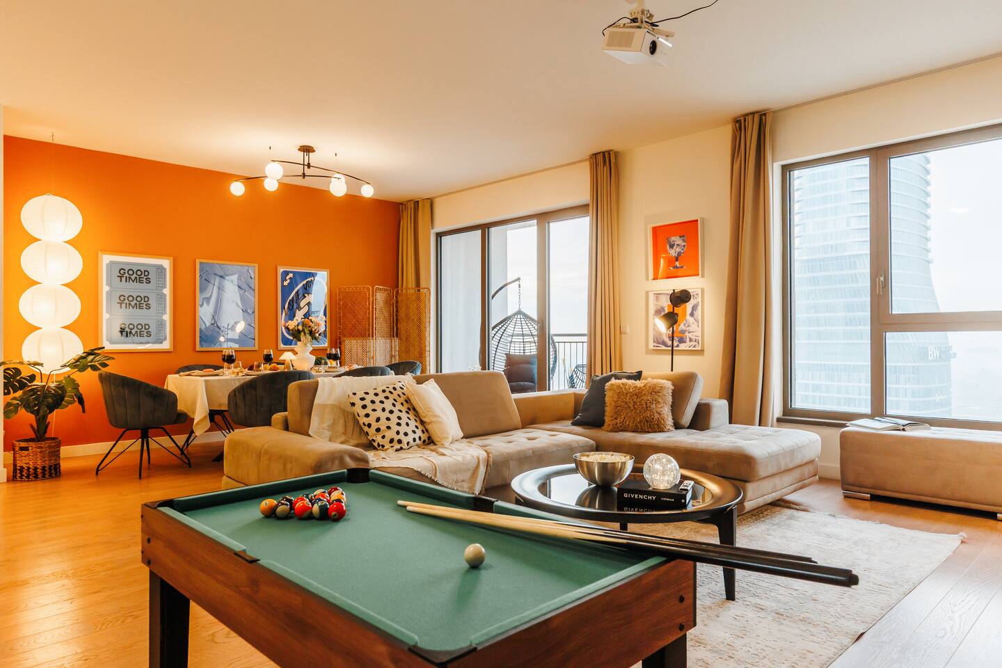 Inside you'll find: ✓ Your private cinema: projector + Netflix in a spacious living room ✓ 3 comfortable bedrooms: 2 Queen beds + King bed ✓ Smart TV and Netflix in two bedrooms ✓ 2 Cozy terraces ✓ Inviting dining space for shared meals and long conversations ✓ Game zone featuring a billiards table ✓ Wi-Fi & Workspace ✓ Fully equipped kitchen with oven, fridge, dishwasher, microwave, cookware, and basic groceries ✓ Capsule coffee machine – perfect espresso in seconds ✓ All rooms equipped with air conditioning ✓ 2 Bathrooms + washing machine and dryer ✓ Handy extras like an iron, umbrellas, adapters, first aid kit, sewing kit & lint roller ✓ Facing a quiet side street Book now — and we’ll send our gastro guide: 5 dishes to start your Serbian food journey with the recommended location🌮🍟